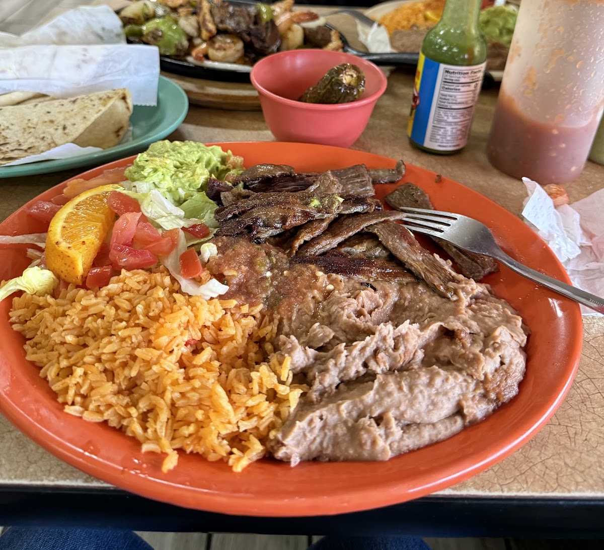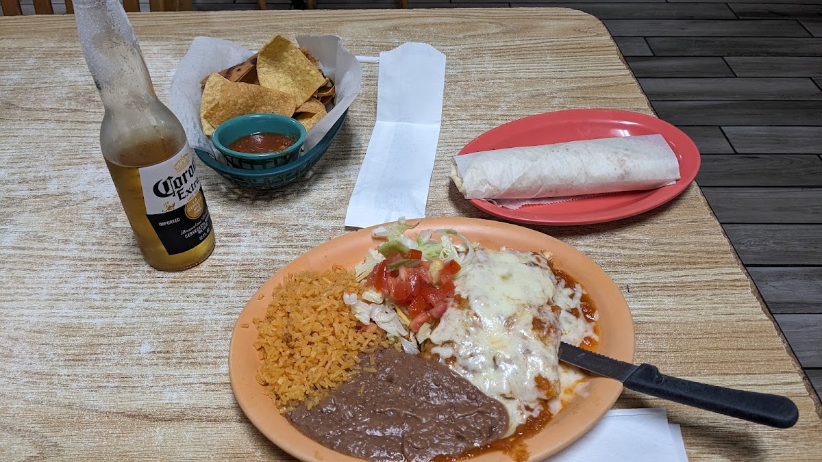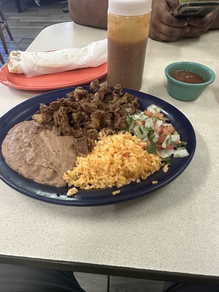 The menu reflects traditional Mexican comfort food staples. Favorites include classics like Carne Asada and Pastor tacos, a generous Fajita Plate, and hearty options like Enchiladas Rancheras and Chilaquiles. For brunch or breakfast, plates like Huevos Rancheros and Machacado come through as reliable morning choices that locals often return to. There's also variety for kids with selections such as Chicken Fried Steak and Pork Chop plates, which makes it a practical option for family outings.